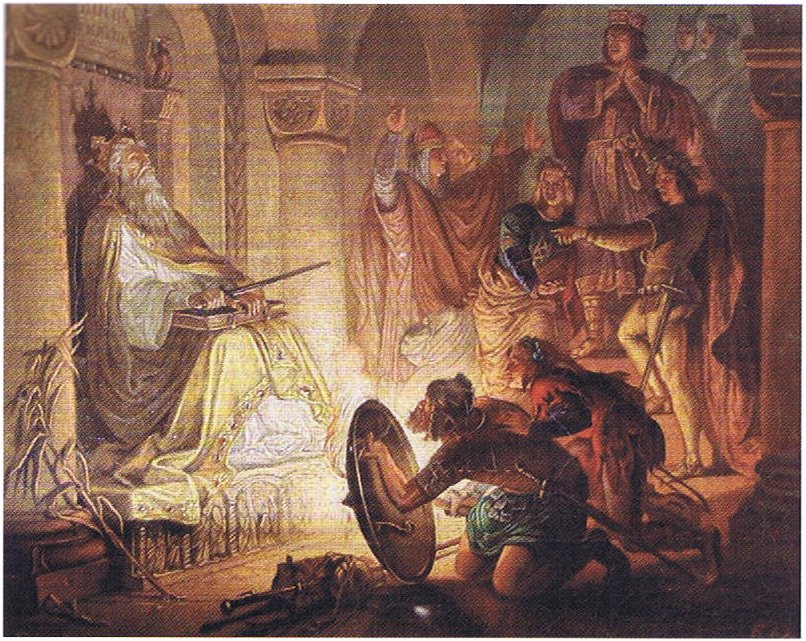 Het is Frederik Barbarossa geweest die de mythe van Aquis naar Aken heeft 'verplaatst'. Net als in Nijmegen bouwde hij in Aken een nieuw Paleis, zelfs maakte hij van Aken de nieuwe hoofdstad van zijn rijk, dat het nieuwe Rome werd genoemd. De ligging van Aken zo aan de rand van het rijk der Franken is ook altijd een vraagteken geweest. Immers als de Saksen aan de kust van Het Kanaal woonden en Karel de Grote in Aquisgranum terugkeerde van een strijd tegen die Saksen, is een verre reis vanaf de kust van Het Kanaal helemaal naar Aken niet aannemelijk. Er is door enkele historici (o.a. Magda Stradiot-van Roy en Rinus Boidin) al eerder getwijfeld of Karel de Grote wel in Aken verbleef. Ook Albert Delahaye twijfelde hieraan en heeft zich altijd afgevraagd waarom Aken (en Maastricht en Tongeren) dan niet op de Peutingerkaart staat. De aanwezigheid van warmwaterbronnen zou voor de Romeinen reden genoeg zijn geweest deze plaats duidelijk te vermelden en te markeren. Opvallend in dit verhaal is tevens dat Einhard zowel Aken als Nijmegen niet als een van de 21 hoofdsteden van het Frankische rijk noemt; 'Vita Karoli Magni, vers 33'. Hoe kan dat? Hiermee wordt duidelijk de valsheid van de mythe zowel in Aken als in Nijmegen aangetoond. De opsomming van die 21 hoofdsteden geeft ook duidelijk de omvang van het Frankische rijk ten tijde van Karel de Grote aan. Nu er na lang zoeken geen graf van Karel de Grote is gevonden in Aken en de oudste archeologische vondsten uit de 13e eeuw dateren, is ook dit een aanwijzing te meer dat we -na de z.g. palts te Nijmegen- te maken hebben met een volgende mythe. Een mythe waarbij de Duitse historici alle moeite genomen hebben om van de Franse Charlemagne vooral een DUITSE vorst te willen maken. Ook al zijn (bijna) alle historici het met elkaar eens, dan hoeven ze nog geen gelijk te hebben. |