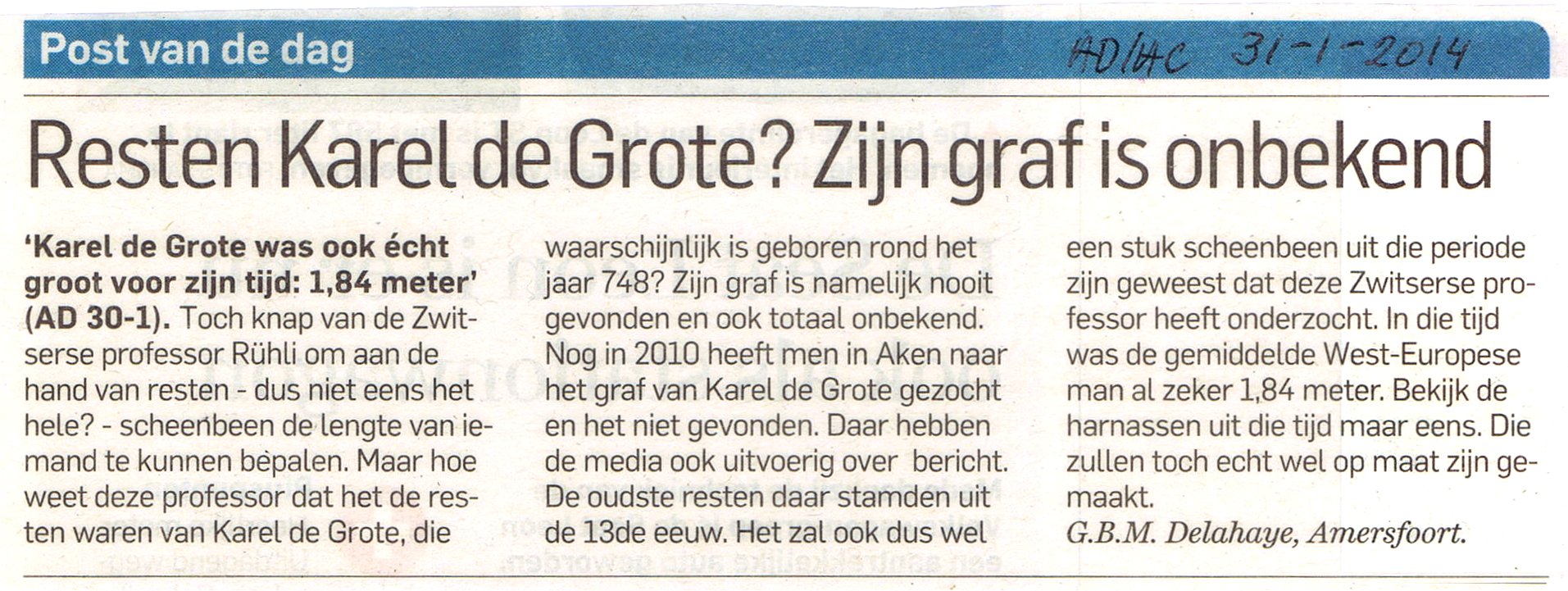 De geschiedenis van de stad Aken is een Duitse Mythe, 'opgezet' door Frederik Barbarossa die er 'het Nieuwe Rome' wilde realiseren. Het was ook Frederik Barbarossa die Karel de Grote heilig wilde laten verklaren, al ging de Paus van Rome daar niet in mee. Daarnaast is het opvallend dat Brabarossa bij de bouw van de burcht in Nijmegen, ter plaatse niet verwees naar zijn grote voorbeeld en 'voorganger' Karel de Grote, maar dat hij herstelde wat de Romeinen hadden gebouwd. Opvallend blijft ook dat het graf van Karel de Grote in Aken nooit gevonden is. Het heeft er nooit bestaan. Het is een mythe. Ook de overtuiging dat men er de schedel van St.Willibrord zou hebben, is een even grote mythe. St.Willibrord zou in Echternach begraven zijn, wat eveneens een mythe is. Het corpus van St.Willibrord in Echternach is aantoonbaar vals (zie bij Echternach). St.Willibrord werd begraven in Francia en zijn corpus werd in de 15de eeuw teruggevonden in Abbeville. Aken is niet het Aquis Grana uit de klassieke bronnen. Dat blijkt uit het volgende: ![]() Opvallend is dat Aken door Einhard in de 'Vita Karoli Magni' (VKM) niet wordt genoemd als een van de 21 hoofdsteden van het Frankische Rijk, maar ook Nijmegen en Ingelheim niet. Dat is slechts verklaarbaar als Aken niet van enige importantie was. In Duitsland worden door Einhard alleen Keulen (de noordelijkste plaats), Mainz en Trier als hoofdsteden genoemd. Ingleheim en Nijmegen ontbreken eveneens in deze opsomming! Het Noviomagus waar Karel de Grote in alle pracht en praal een nieuw Paleis liet bouwen, (of het nu Noyon of Nijmegen was) wordt ook niet als hoofdstad genoemd. Overigens ontbreken ook Soissons, Laon, Parijs, Doornik en Metz als hoofdsteden, terwijl ze zeker een Merovingische en Karolingische geschiedenis hebben gehad. De vraag is dus of de VKM van Einhard wel betrouwbaar was. De visie van Albert Delahaye. Albert Delahaye heeft Aken altijd geaccepteerd als een Karolingische residentie, ook van Karel de Grote. In Aken trof hij aan wat hij in Nijmegen miste, zoals domeinen, die, opvallend, alleen in zuidelijke richting lagen. Het was een van de argumenten om de band met Nijmegen te weerleggen. Ook de warmwaterbronnen waren een overtuigend gegeven. De naam Aquis (Granni) zoals er velen waren in het Romeinse Rijk, leek Delahaye geheel aannemelijk. Aangezien zijn voornaamste visie aanvankelijk de stad Nijmegen betrof en het daar nooit aangetoonde Karolingisch Paleis, heeft Delahaye zich in zijn verdere studie niet zozeer meer om Aken bekommerd. Daar lag ook niet zijn prioriteit en wegens tijdgebrek is hij er ook later niet aan toegekomen dat nog eens haarfijn uit te zoeken. De geschiedenis van Aken was verder ook geen belemmering om de Nederlandse traditionele opvattingen en vooral om die van Nijmegen te kunnen weerleggen. Dat lukte zonder Aken ook wel. Ook het Romeinse verleden van Aken leek geen belemmering voor zijn opvattingen, evenmin als dat in Nijmegen het geval was. Toch twijfelde Delahaye ook aan de geschiedenis van Aken. In een persoonlijke aantekening over Julius Caersar vermeldde hij al Accha of Acha als Aix-la-Chapelle. In De Ware Kijk Op wijst hij er nog op dat Aken in de Germaanse vorm als Acha bekend is, in de Latijnse of Romaanse vorm als Aquis, en verfranst als Aix-la-Chapelle. Toch is er geen enkele reden om te veronderstellen dat de streek tot het Romaanse taalgebied behoorde, daar Romaanse vormen er zeldzaam zijn, schrijft hij. Het heeft Delahaye ook altijd verbaasd dat Aken niet op de Peutingerkaart stond. Dat zou voor de Romeinen een onwaarschijnlijke misser zijn geweest, zeker omdat er warmwaterbronnen waren. In 'De Ware Kijk Op' deel 2 spreekt Delahaye ook twijfel uit over het Granum/Granni, wat naar een Keltische Godheid zou verwijzen en wat door de Romeinen toch zeker niet als zodanig gebruikt zou zijn. Wat Delahaye betreft had het meer te maken met 'graan-' of 'korenschuur'. Brood was (naast spelen) in de Romeinse tijd immers van levensbelang. En graanvelden waren er rondom Aken voldoende om ook dit als waarschijnlijkheid te zien Ook twijfelde Delahaye over de Romaanse vorm Aquis van Aken in het Germaanse taalgebied. De verklaring die wel eens gegegeven wordt met de oorkonde van Gerberga uit 968 van enkele Romaanse namen in Zuid-Limburg, houdt natuurlijk geen stand als je weet dat deze oorkonde in Reims is opgesteld. Een schrijver noemt een plaats nu eenmaal in de hem bekende taal. Zo noemen wij Luik niet Liège, wat de plaatselijke bevolking zeker wel doet. In 839 vierde Lodewijk de Duitser het Kerstfeest in Aquis. Hier noemt Delahaye dat het om Aix ging en dat het niet Aken was. Een volgende twijfel derhalve. In 997 schenkt Keizer Otto III aan het klooster van Echternach goederen bij Aken. Deze tekst in een vervalsing. De schenking kan best waar geweest zijn, schrijft Delahaye, en dan weten we ook waar de derde schedel van St.Willibrord die men in Aken verwierf vandaan kwam. Zie Ontspoorde Historie tekst 92. Het voorkomen van Aken in latere oorkonden (1039 -1056) levert geen probleem op t.a.v. de Karolingische periode, maar dan weer wel t.a.v. bezittingen van het Marienstift in Brabant. Ook hierbij heeft men grote misvattingen gemaakt met de erin voorkomende plaatsnamen. Zie de deplacements historiques. Het zier er sterk naar uit dat met Aken/Aachen dezelfde misvatting is gemaakt als met het Germania van Tacitus. Op grond van onjuiste interpretaties heeft men Aquis (net als Germania van Tacitus) naar Duitsland getrokken, nadat Frederik Barbarossa het gesticht had als een nieuwe hoofdstad. De historici hebben deze misvattingen niet doorzien, waarna Aken een geschiedenis kreeg toebedeeld die zich er nooit heeft voorgedaan. Wat weten we over Ingelheim dat door Einhard tesamen met Noviomagus wordt genoemd?Allereerst dat Multatuli (Eduard Douwes Dekker) er enige tijd heeft gewoond en er overleden is. Maar we weten ook dat de archeologie in Duitsland aantoont dat er niets uit de tijd van Karel de Grote gevonden is, ook niet net