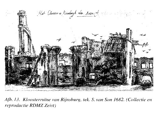 Over graaf Floris V zegt de tijdgenoot-kroniekschrijver Melis Stoke: Hi wort begraven ter selver stede/ In den coer met groter eerend. Skelet nr. 92, met de verwondingen aan de schedel, werd echter in de zuidelijke absisidiool aangetroffen. Volgens de historische gegevens werden in de Gravenkapel 10 graven en gravinnen bijgezet. Als we de bijzettingen in het koor ook mogen rekenen tot die in de Gravenkapel, dan zouden er voor het koor 10 in plaats van 12 skeletten van leden van de grafelijke familie moeten zijn aangetroffen. Volgens de historische gegevens (tabel 5) zijn in totaal 17 leden van de grafelijke familie in de abdij van Rijnsburg bijgezet, zodat 7 ervan vermoedelijk in de kloostergang of elders in de abdijkerk zijn begraven. In het laatste geval is de man/vrouw verhouding van de aangetroffen skeletten niet met de historisch vaststaande verhouding in overeenstemming, in het eerste geval is bovendien het totale aantal niet juist. De resultaten van het historisch-archeologisch onderzoek, de '14C-metingen en het fysisch-antropologisch onderzoek leiden dan ook tot de conclusie dat de identificatie van de onderzochte skeletten, zoals eerder door B.K.S. Dijkstra gedaan, op een misvatting moet berusten. Zij steunen daarentegen het al tijdens de opgravingen uitgesproken vermoeden dat de skeletten behoorden tot het grafveld dat zich ten oosten en ten noorden van de abdijkerk heeft uitgestrekt. Dit grafveld is op grond van de stratigrafische ligging, het 14C-onderzoek en het aangetroffen aardewerk te dateren in de 9de - 11de eeuw. Een uitzondering vormt graf nr. 102 dat blijkens de 14C-datering nog uit de Merovingische periode dateert. Dit graf zou dan tot de oudste nederzettingsfase behoren, mogelijk bij het huis dat er heeft gestaan. Een dergelijk begravingswijze was niet ongebruikelijk in die tijd. Hoewel er dus geen profiel beschikbaar is over de Karolingische bijzettingen, blijkt uit de genoemde dagrapporten van de opgravers dat 'in de hogere vlakken geen insteek van de grafkuilen kan worden aangetoond'. Een tweetal 14C-dateringen van in de kloostergang begraven skeletten, alsmede het feit dat ook skeletten onder de fundering van het koor werden aangetroffen, doet vermoeden dat het grafveld zich ook naar het noorden heeft uitgestrekt. Blijkens een aantekening in het oudste gedeelte van het Utrechtse goederenregister, heeft de St. Maartenskerk hier vanouds (vóór 860) bezittingen gehad. Huisplattegronden uit zowel de Merovingische als de Karolingische tijd zijn - stratigrafisch gescheiden - bij de opgravingen terug gevonden. Het aangetroffen grafveld behoort zonder twijfel overwegend tot de tweede bewoningsfase. In 1063 wordt in een oorkonde de 'capella' te Rijnsburg genoemd; deze kapel werd gebouwd na de afsplitsing van de moederparochie Oegstgeest. Inmiddels was de naam Rothulfhuashem vervangen door de naam Rijnsburg, hetgeen de situatie weerspiegelt waarbij de tot burg getransformeerde villa in het bezit van de graven van Holland was geraakt. Na ophoging van het terrein heeft gravin Petronilla daarop omstreeks 1130 de abdijkerk gebouwd. De stoffelijke resten van de tien, in de Gravenkapel te Rijnsburg bijgezette leden van de grafelijke familie van Holland, waaronder Floris V, zijn hoogstwaarschijnlijk reeds in 1613 tijdens de radicale sloop van de fundamenten van de abdijkerk, geruimd. Al eerder, in 1574, waren de 'heerlijke tomben' die hun graven dekten, aan de vernielzucht van plunderaars ten prooi gevallen. |