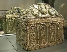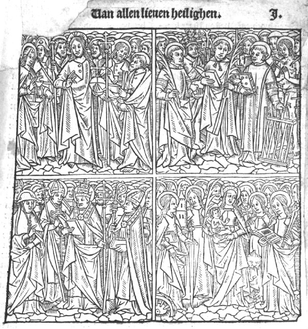 Fragment uit handschrift nr.896 (het volgnummer geeft al aan hoeveel verschillende handschriften hebben bestaan). Dit handschrift is vervaardigd in de tweede helft van de 15e eeuw en in bezit van de Universiteit van Gent.Het importeren van heiligenlevens is niet op één moment gebeurd en al helemaal niet vanaf de tijd dat de betrokken heilige in de geschiedenis verscheen. Wanneer en hoe die import van de verschillende heiligen precies plaats vond blijft een vraag. Wel is te herleiden op welk tijdstip de verering van een bepaalde heilige onder de bevolking voor het eerste voorkwam. Veel informatie is daarbij te halen uit de Passionael, of de Leganda Aurea, de Gouden Legenda. De import ging in fasen, waarbij de ene legende de opmaat was voor de volgende. Zo ver de historische kennis reikt was St.Liudger de eerste geïmporteerde heilige in Nederland. Allemaal botjes. In Madoc no.4 van 2014 verscheen een artikel genaamd "Allemaal Botjes. Over echte en valse relieken". Voor historici en vooral de niet-katholieken erg interessant. Voor katholieken minder urgent, immers zij kennen hun eigen nest wel. Relieken en de prachtigste reliekschrijnen zijn wel bij iedereen bekend bij een bezoek aan historische kerkgebouwen of tentoonstellingen over het katholiek 'erfgoed'. En dan is het helaas zo: hoe imposanter de reliekschrijn, deze te achterdochtiger men omtrent de reliek dient te zijn. Relieken zijn, -hoewel niet typisch voor de roomse kerk, ze komen en kwamen overal voor- vooral in het roomse zuiden van ons land nog steeds populair. De protestantse 'noordeling' heeft er dankzij Luther en Calvijn geen binding mee. Het waren juist Luther en Calvijn die zich teweer stelden tegen die Roomse handel in relieken en andere 'roomse' zaken (o.a. de aflaten) en prullaria. Op een bepaald moment wilde iedere kerk, of kerkelijke gemeenschap, hoe klein ook, een aandenken aan een persoon of een heilige waarmee men een bijzondere band meende te hebben. Zo'n aandenken was dan vaak iets persoonlijks, een gebedsboek, een sandaal, een stuk van een mantel van die voorganger of heilige. Ook stoffelijke resten waren veel gevraagd, zoals een stukje bot of zelfs een heel bot. Naarmate het aantal kerken en gemeenschappen steeg werd de vraag naar reliek steeds groter. Oorspronkelijk werden de stoffelijke resten van de heropgegraven heiligen in hun geheel bewaard. Maar de toenemende vraag zorgde ervoor dat de skeletonderdelen uitgedeeld en geschonken werden aan nieuwe geloofsgemeenschappen. Soms werden ze zelfs gewoonweg gestolen, want alhoewel het stelen op zichzelf zondig was, gold dat niet voor het bezitten van gestolen relieken. Ze waren immers het bezit van de hele kerkgemeenschap en dus kon men een gestolen reliek niet zomaar terugeisen - al gebeurde het soms wel.