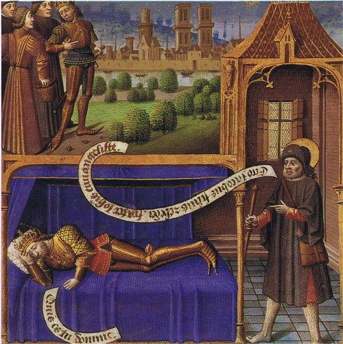 Sinds de Middeleeuwen weten we toch hoe de verering voor heiligen en het toerisme dat eruit voortkwam ontstond en welke gevolgen het heeft gehad. Door armlastige pelgrims zijn hele kerken en gebouwen opgebracht, allemaal ter ere van het Christendom. Dank zij die bedevaartgangers ontstond zelfs een bloeiende economie. Zo is de O.L.Vrouwe-toren (en kerk) in Amersfoort betaald door inkomsten uit de pelgrimage naar het wonderlijke Mariabeeldje dat in 1444 gevonden werd in een gracht. Van dat beeldje is nu slechts een handvol stof over, dat als relikwie bewaard wordt. Of dat werkelijk een overblijfsel is van dat beeldje is wel aangenomen, maar nooit aangetoond. (Bron: Maria in beeld, Kroniek sept.2021).Desiderius Erasmus schreef daarover dat de 'goed'gelovige om de tuin werd geleid. In zijn "Lof der Zotheid" hekelde Erasmus de dwaasheid van de mensheid. Ook heeft hij in diverse geschriften kritiek geuit op misbruiken binnen de Kerk, met argumenten tegen heiligenverering en bedevaarten, juist die een toch wel intellectueel karakter droegen. De gelovigen werden daarmee om de tuin geleid. De praktijk van bedevaarten vond Erasmus achterhaald. Het was onnodig verre reizen te maken voor iets wat dichtbij te halen is, namelijk het eigen hart. De gelofte tot bedevaart naar Rome, het Heilig Land of Santiago de Compostella, zoals algemeen gebruikelijk was voor de goedgelovige Middeleeuwer (en nu nog gebeurt) vond Erasmus nutteloos. (Spiegel Historiael, febr.1974). Afbeelding hiernaast: Jacobus van Compostella verschijnt aan Karel de Grote. Miniatuur 15de eeuw. Maar wat erger is: historisch gezien zijn heiligenlevens en vereringen een gevaar voor de historische waarheid. In de 'vitae' van heiligen dient men de wonderverhalen streng te scheiden van de historische gegevens. Dat is precies waar Albert Delahaye steeds op gewezen heeft. Een voorbeeld: als Einhard over Karel de Grote schrijft, moeten veel gegevens met argwaan en twijfel bekeken worden, zeker waar hij schrijft over de 'goede' eigenschappen van deze machthebber. De levensbeschrijving van Karel de Grote bevat de nodige historische fouten, onjuistheden en wonderlijke verhalen. Dan kan men de mededelingen van Einhard niet klakkeloos als juist blijven volgen, wat helaas wel gebeurd is. Zo is het ook vaak met vitae van predikers en heiligen. Men kan twijfelen aan de goedgelovigheid van de predikers als Bonifatius, die slechts met goedkeuring en instemming van de plaatselijke machthebbers het 'geloof' konden verkondigen. Daarbij ging het allerminst over de Christelijke waarden en normen, maar het Christendom was slechts een 'machtsmiddel' om volkeren aan zich te binden. Dit verschijnsel is van alle tijden en van alle godsdiensten. Wie niet met mij is, is tegen mij. Bekijk eens de prediking van Willibrord en Bonifatius. Ze werkten wel mee aan de onderdrukking van de 'heidenen', dus hoe heilig waren ze? Is het dan vreemd dat Bonifatius als vertegenwoordiger van de erfvijand, door de Friezen vermoord werd. Dat was geen geloofsmoord zoals traditioneel altijd is opgevat, maar een politieke moord.