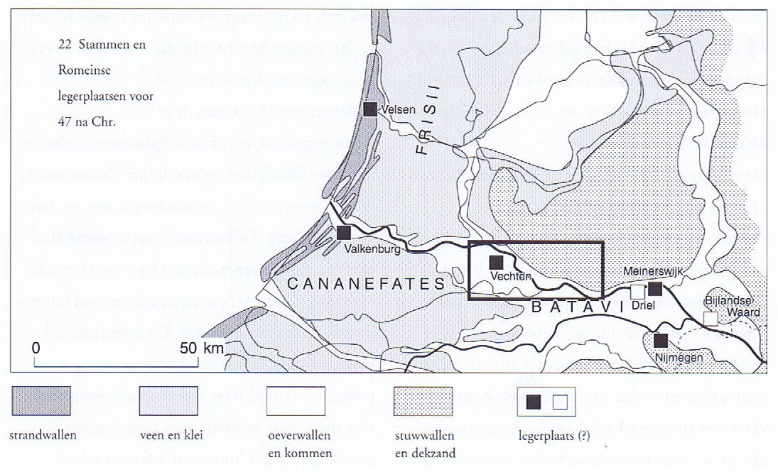 De Bataafse invloedssfeer lijkt aanvankelijk tot een klein deel van de Betuwe en de Maaskant beperkt te zijn gebleven. De gedachte dat de Bataven een verlaten gebied, de Betuwe en het Brabantse achterland, met hun aanwezigheid vulden, vindt thans geen bijval meer. Dan houdt toch de hele discussie over Bataven in Nederland op? Insula Batavorum, het Eiland der Bataven, dat op zijn minst het gehele oostelijke rivierengebied omvatte, is een later Romeins begrip". 'Het Kromme-Rijngebied is nogal ver verwijderd van de streek waar de Bataven zich vestigden. Van de komst van de Bataven naar Nederland zal hier weinig te merken zijn geweest. Dat er leden van die stamgroep zijn neergestreken, is hoogst onwaarschijnlijk. Contacten tussen het nieuwe machtscentrum bij Rossum en het Kromme-Rijn-gebied zijn denkbaar, maar aanwijzingen daarvoor ontbreken. Zilveren triquetrum-munten zijn zover naar het westen niet gevonden. Overigens zullen contacten met de Bataven, evenals trouwens de aanwezigheid van Bataven zelf, archeologisch altijd wel moeilijk aantoonbaar blijven. Afgezien van de genoemde munten zijn er tot nu toe geen specifiek Bataafse bodemvondsten'. Op p.35 lezen we vervolgens nog: "Tot slot een korte samenvatting van de situatie in het Kromme-Rijngebied in de periode na Caesar. Van de aanwezigheid van Bataven of zelfs van contacten met die groepering is tot nu toe niets gebleken. Het gebied werd bewoond door een 'inheemse' agrarische bevolking. De herkomst van deze inheemse bewoners is nog niet nader te bepalen. Totdat het tegendeel blijkt, nemen wij echter aan dat zij afstamden van de IJzertijdbevolking die al eeuwenlang in het rivierengebied had geleefd. De bevolkingsdichtheid is niet te meten, maar gering behoeft zij niet te zijn geweest. Verplaatsing van nederzettingen kwam voor, maar de achtergrond van dit verschijnsel is nog niet verklaard en het is onduidelijk of het op andere dan lokale, landschappelijke factoren terug te voeren. De nederzettingen die thans bekend zijn, waren klein en eenvoudig van structuur: een of twee verspreid liggende boerderijen. Van een neder-zettingshiërarchie is nog niets gebleken. De bestaansbasis was naar alle waarschijnlijkheid overal dezelfde: het gemengde agrarische bedrijf. Vondsten die op externe contacten wijzen, zijn er weinig. De maatschappelijke differentiatie was waarschijnlijk zeer gering (p.35). Opmerking: op zoveel onzekerheid bouwt men in Nederland geschiedenis! Zet dit even naast wat Van Es in 1981 schrijft in zijn boek 'De Romeinen in Nederland': "Rossum aan de Waal heeft nogal wat laat-Romeinse munten opgeleverd. Dit leidt tot de veronderstelling dat hier in de 4de eeuw nog werd gewoond, maar niet noodzakelijkerwijs tot de conclusie dat die nederzetting een militaire, laat staan een castellum was" En zelfs al lag er een castellum bij Rossum, dan nog is er geen noodzaak aan te nemen dat dit een schakel was in een gesloten keten van forten langs de Waal of de Maas. Een eventueel laat-Romeins fort Rossum zou de vroegere functie kunnen hebben behouden: versterking van het beginpunt van een invalsweg naar het achterland. Bovendien, zelfs al zou men een Waal-Limes willen aannemen, dan blijft nog de vraag wanneer langdurig in of bij de oude militaire vestingen gewoond is. Maar door wie, dat is de vraag. (p.127). Op p.232 wordt dit betoog vervolgd met: In het middenstuk van het rivierengebied, dat ongetwijfeld deel van de civitas van de Bataven uitmaakte, zou er theoretisch voor een regionaal subcentrum plaats zijn, maar het is (nog) niet gevonden. Het meest in aanmerking komt wellicht Rossum, waarvan het uitsluitend militaire karakter toch eigenlijk niet bewezen is. Je moet je hier dus bij voorstellen dat de Romeinen vanuit een nog niet door hen bezet gebied (midden-Duitsland), volkstammen naar een ander deel van een nog niet door hen bezet gebied (midden Nederland) dirigeerden. Het opzettelijk verplaatsen van volkstammen deden de Romeinen niet. Wel het verdrijven van stammen of ze uitmoorden als ze te lastig werden. Volgens Van Es werden de Bataven in Rossum geplaatst omdat daar enkele Keltische munten zijn gevonden. Waren de Bataven Kelten? Dat is nieuw! Dat ze vrienden van de Romeinen waren is ook zo'n onbewezen opvatting. Waarvan dan hun opstand in 69/70? Van een castellum of een Romeins fort is in Rossum nooit iets gevonden! Rossum zou Grinnibus van de Peutingerkaart zijn geweest. Rossum ligt niet in de Betuwe (dat toch de Patavia was?) en ligt ten zuiden van de Maas (die ook niet op de Peutingerkaart staat. De Patabus was toch de Waal?). Hoe bestaat het dat een toch bestudeerd iemand als Van Es zoiets schrijft, waarbij hij zichzelf tegenspreekt? Met 'mogelijk, 'welhaast zeker', 'schimmig', 'waarschijnlijk', 'aannemen', 'niet gevonden', 'wellicht', 'niet bewezen', 'een gedachte', 'theoretisch' en 'blijft de vraag', bewijs je toch helemaal NIETS! |