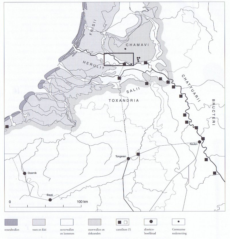 Opmerking: de Saliërs (aan de Selle), de Chamavi (Camphin) en de Sygambri (omgeving Cambrin) waren stammen in Gallia, net als de Belgae en Chauci (omgeving Chocques). De Albis was de Aa in Frankrijk en niet de Elbe in Duitsland. De Salische Franken die traditioneel in Overijssel geplaatst worden, komen pas in Romeinse bronnen voor aan het eind van de 4de eeuw. Toen waren de Romeinen allang uit Nederland verdwenen. De gedachte dat de Saliërs vanuit Overijssel naar Frankrijk zijn getrokken wordt in geen enkele bron vermeld. Het is ook uitgesloten dat de Romeinen aan het eind van de 4de eeuw nog veldtochten gaan houden naar Nederland en in Overijssel. Het geheel deed zich voor in Frankrijk waar de Salische Franken vanouds ook woonden. Zij werden in de geschreven bronnen pas Franken genoemd, toen de verschillende stammen zich als vrij volk gingen verenigen. Nadat de term Franken opkwam, verdwenen andere onderscheidende namen van verschillende stammen als Bataven, Chamaven, Saliërs, Sygambri enz. met (soms opvallend) een naamrelict achter te laten in plaats- of streeknaam. Wat uit deze teksten ook blijkt is dat de hier genoemde Renus dus niet de Rijn was, maar een belangrijke grensrivier in Gallia. En daarvoor komt de Schelde in aanmerking, die zijn naam ook dankt aan 'skethit', 'skelt', ofwel een scheiding of grens, etymologisch verband met 'scailid' en 'skilt', een schild, dat je scheidt van je vijand.
