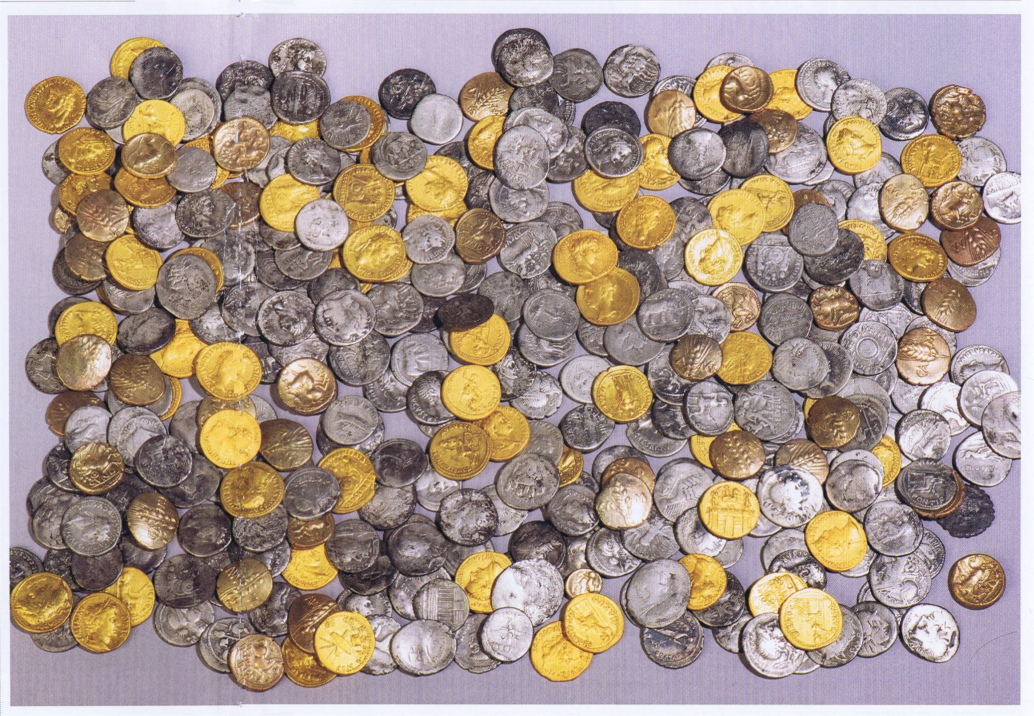 - 288 zilveren munten (denarii), van circa 200 voor tot 46/47 na Christus.