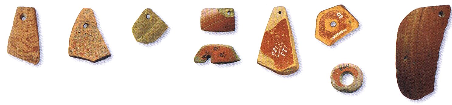 In dit artikel is op verschillende plaatsen sprake van bijzondere voorwerpen die de terpbewoners verzamelden en bewaarden: de botten van overleden familieleden, geschenken die ze kregen als ze ergens op bezoek gingen of wanneer ze zelf bezoek kregen, erfstukken en bijzondere voorwerpen met een symbolische waarde zoals fossielen en terra sigillata-scherven. Er is nog een categorie: losse scherven van aardewerk dat waarschijnlijk opzettelijk was gebroken tijdens samenkomsten en verdeeld werd onder de deelnemers. Hieronder een afbeelding van hangers of amuletten gemaakt van scherven terra sigillata uit verschillende terpen en wierden in Friesland en Groningen. Die scherven bleven voor de deelnemers verbonden met zo'n bijeenkomst en met eventuele gemaakte afspraken. Er werden veel verhalen aan elkaar verteld, dat kunnen mythische verhalen zijn geweest, maar ook herinneringen aan belevenissen en ontmoetingen. De voorwerpen uit het familiearchief, bijvoorbeeld erfstukken of botten van overleden familieleden, hielpen om die herinneringen levend te houden.