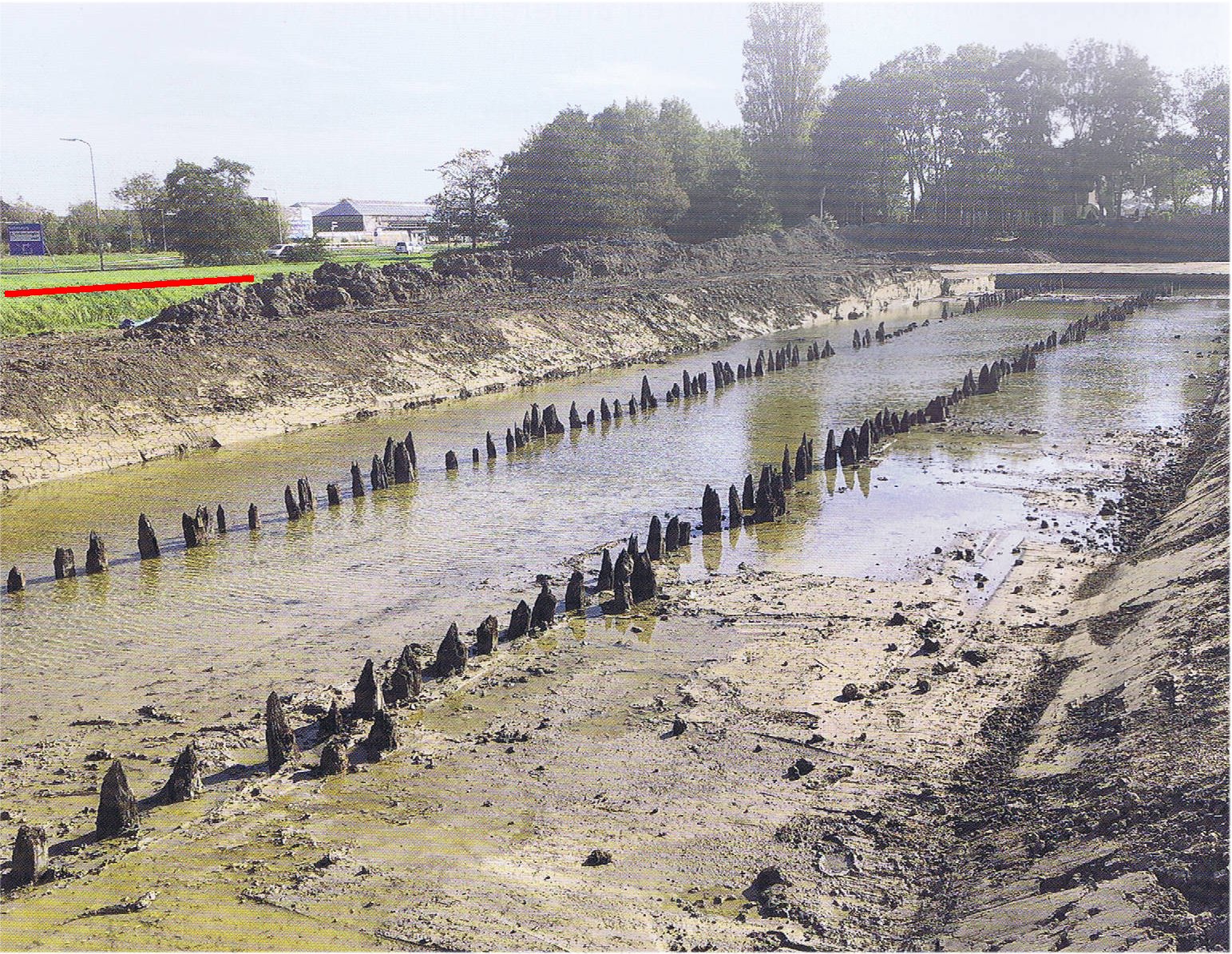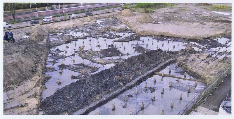 - In de eeuwen daarna werd een laagje klei over het terrein afgezet. Dit bevestigt de transgressie na de Romeinse tijd.