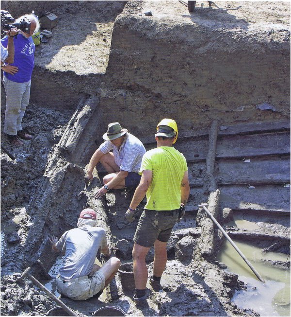 - Drie volmiddeleeuwse zwaarden. Het gaat hier om zwaarden die teruggaan tot de achtse eeuw en tot de dertiende eeuw in zwang bleven. Met hulp van C14 onderzoek is vastgesteld dat het zwaard tussen 1040 en 1260 is gemaakt. De aangenomen opvatting in dit artikel worden gedecimeerd met zo'n ruim marge van twee eeuwen. Het gebeurt in de archeologie vaker dat aangenomen opvattingen door technisch onderzoek herzen moeten worden, wat ook in artikel wordt vermeldt in noot 5: "Het direct verbinden van archeologische vondsten aan historische gebeurtenissen is gevaarlijk, vooral als de dateringen ruim zijn en de contexten onvoldoende duidelijk".