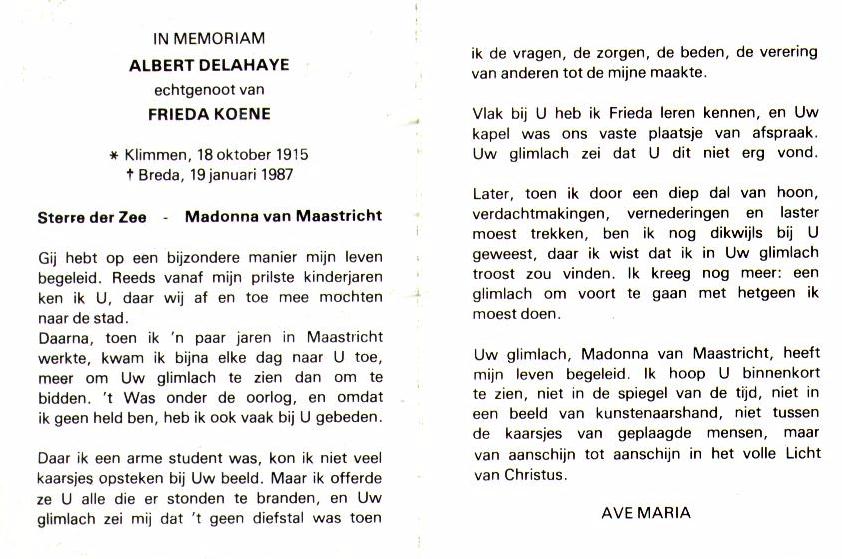 |  Bidprentje van Albert Delahaye, voorzijde.