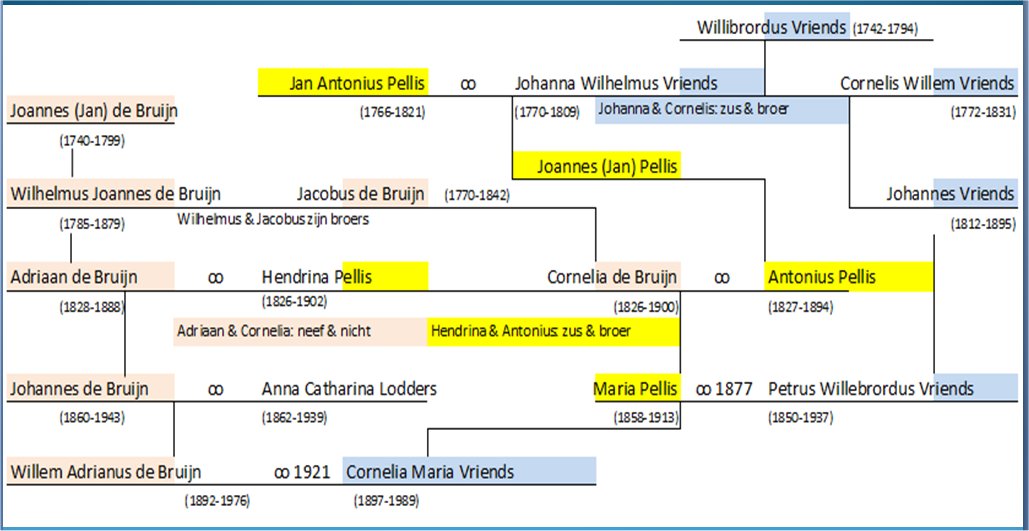 Johannes (Jan) Pellis en Johanna Rombouts waren de opa en oma van Maria Pellis. Maria Pellis was de moeder van Cornelia Vriends, oma de Bruijn.