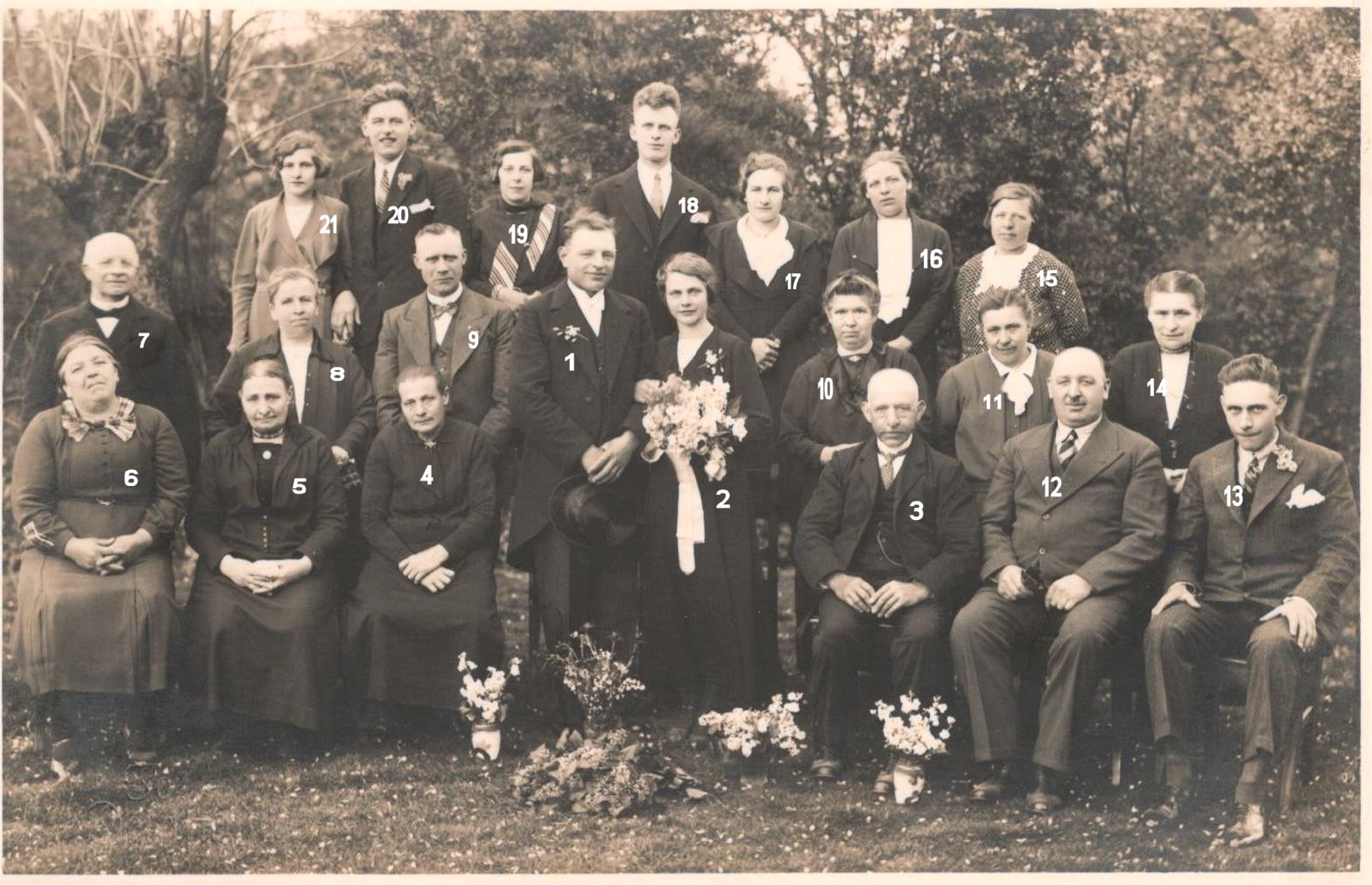 1) Johannes Leonardus Vliegen (1905-1984) 2) Maria Josephina Brouns (1908-1998) 3) Johannes Hubertus Brouns (1875-1952), vader van Fien 4) Maria Apollonia Delahaye (1873-1951), moeder van Fien 5) Maria Gertruda Delahaye (1865-1943), zus van 4 6) Anna Elisabeth Vliegen (1893-1974), zus van 1 7) Joannes Antonius Hubertus Bos (1867-1950), zwager van 4 8) Maria Anna Hubertina Brouns (1880-1949), zus van 3 9) Alfons Hubertus Weusten (1876-1950), echtgenoot van 8 10) Maria Anna Brouns (1878-1961), zus van 3 11) Maria Anna Catherina Brouns (1877-1943), zus van 3 |