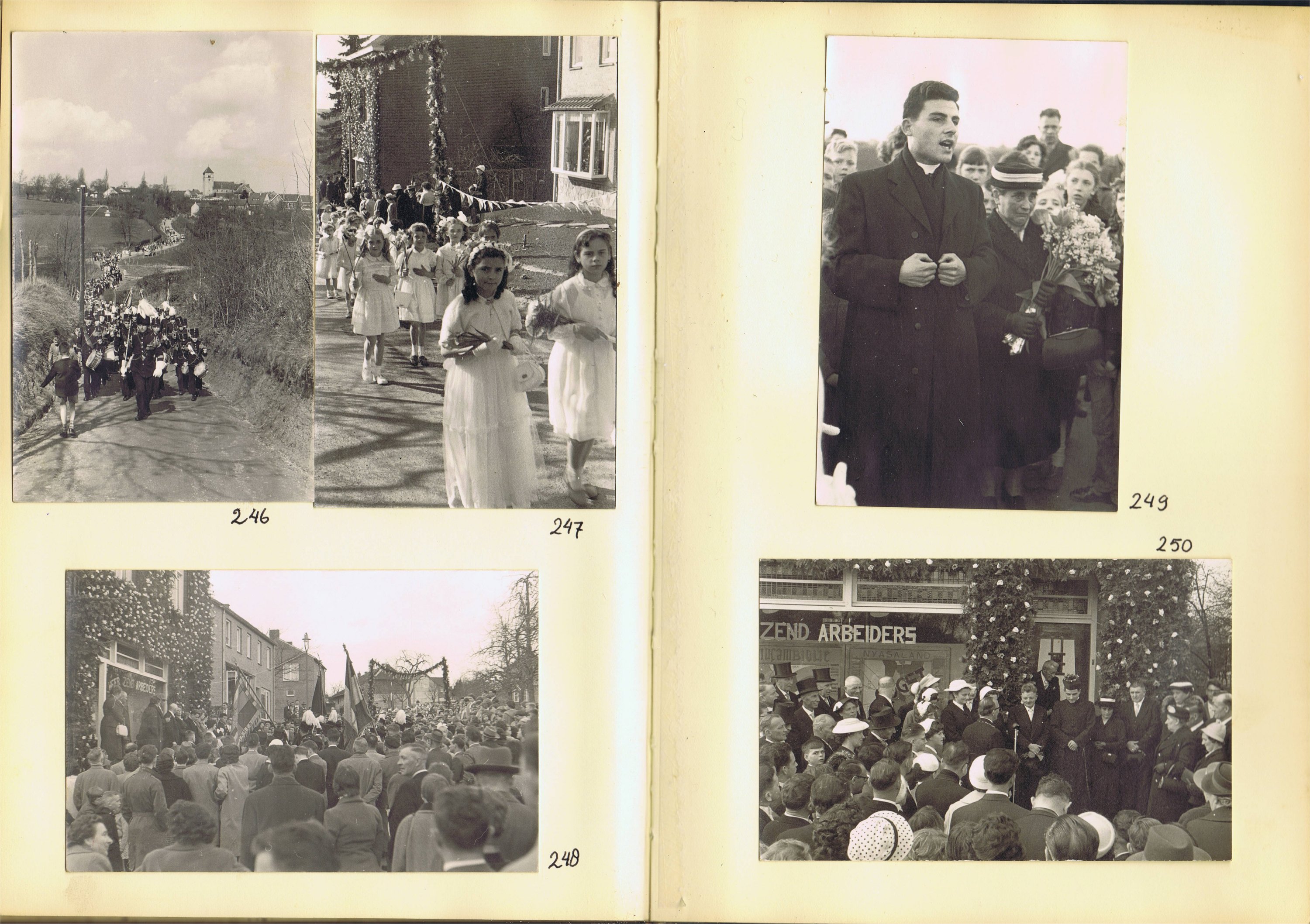 Het versierde huis is niet van broeder Frans. Er zit immers een kelk met hostie in de versiering, wat typisch voor een priester gold. De foto komt wel van hetzelfde formaat als die hierboven en hiernaast.