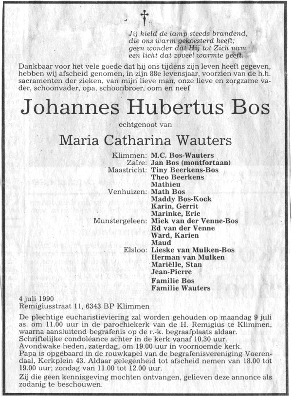 Johannes Hubertus Bos (Klimmen 26-9-1902, Klimmen 4-7-1990).