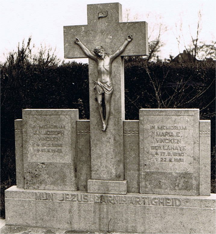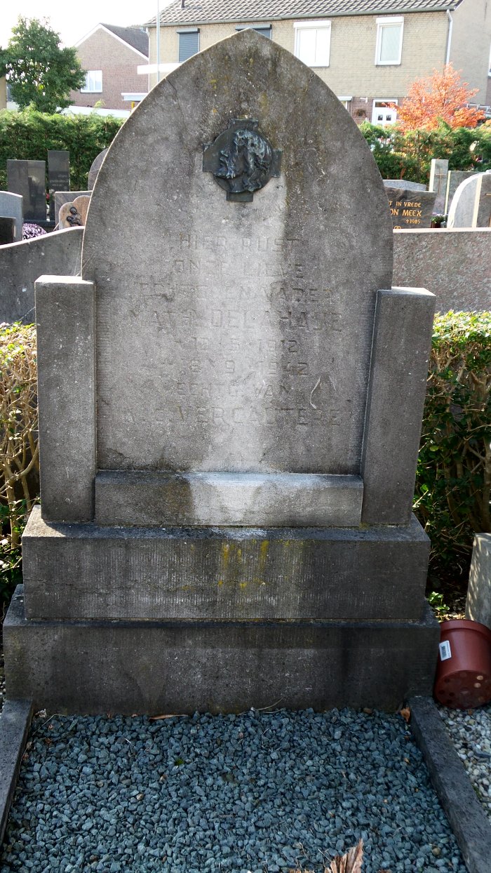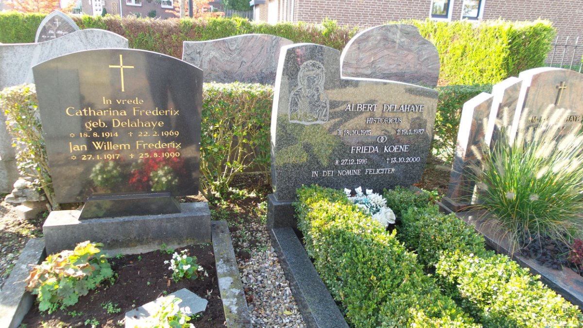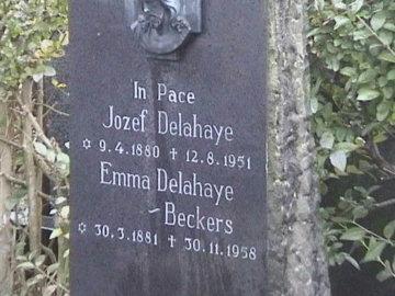 Graven van de familie Delahaye in Klimmen. Van links naar recht: Graf van vader Jozef Delahaye en Emma Beckers (graf is geruimd), naast dat van hun dochter Jeanette en hun zonen Albert en Rim met hun echtegnoten. Enkele meters links van deze graven is het graf van zoon Math, overleden in 1942 (afbeelding recht).