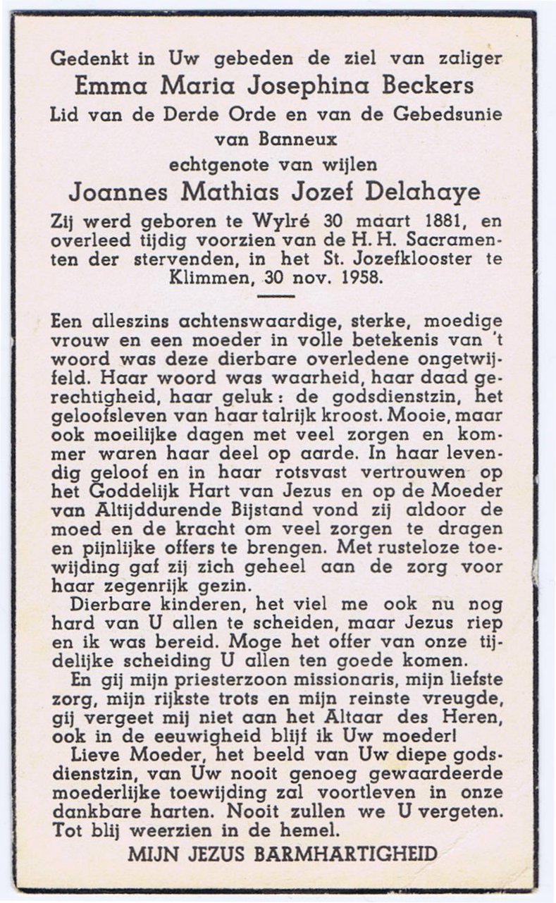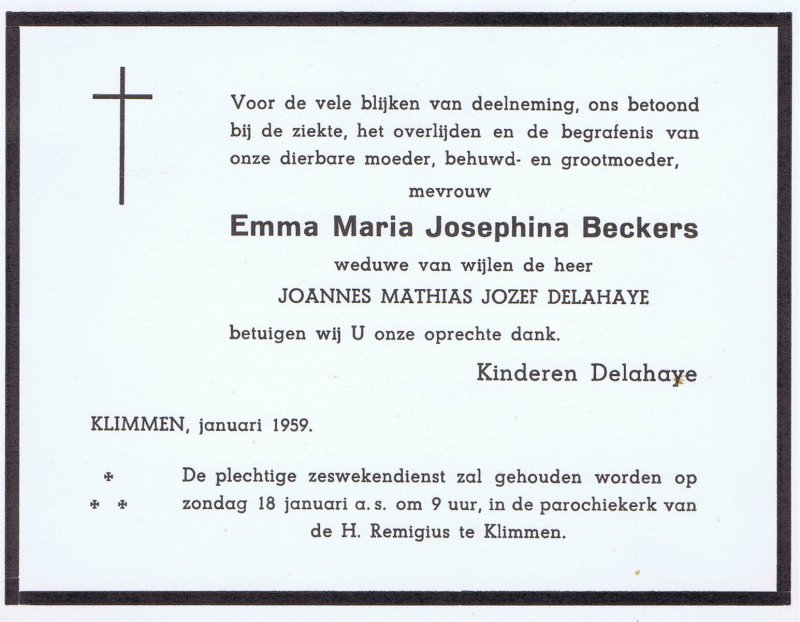 Der Mam, moeder, oma Emma Beckers had 4 broers en zeker 1 zus. Hier wordt nog verder speurwerk naar verricht. Zie verder de familie Beckers.