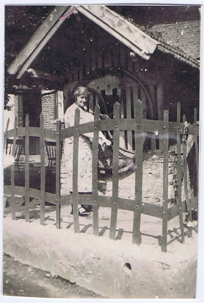 |  Een duidelijkere foto van dezelfde zwengelput met tante Louise (zie verder de familie Beckers).
