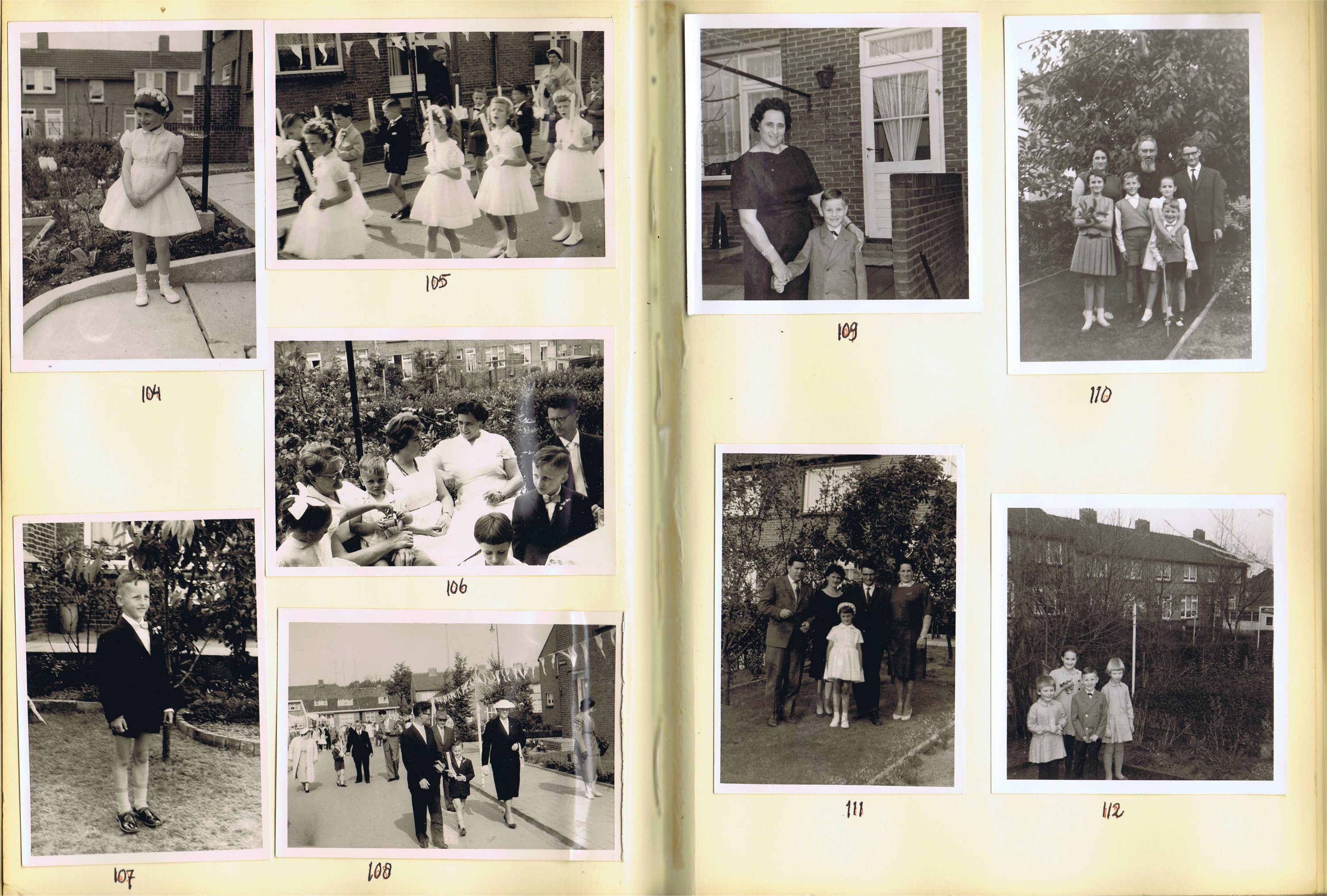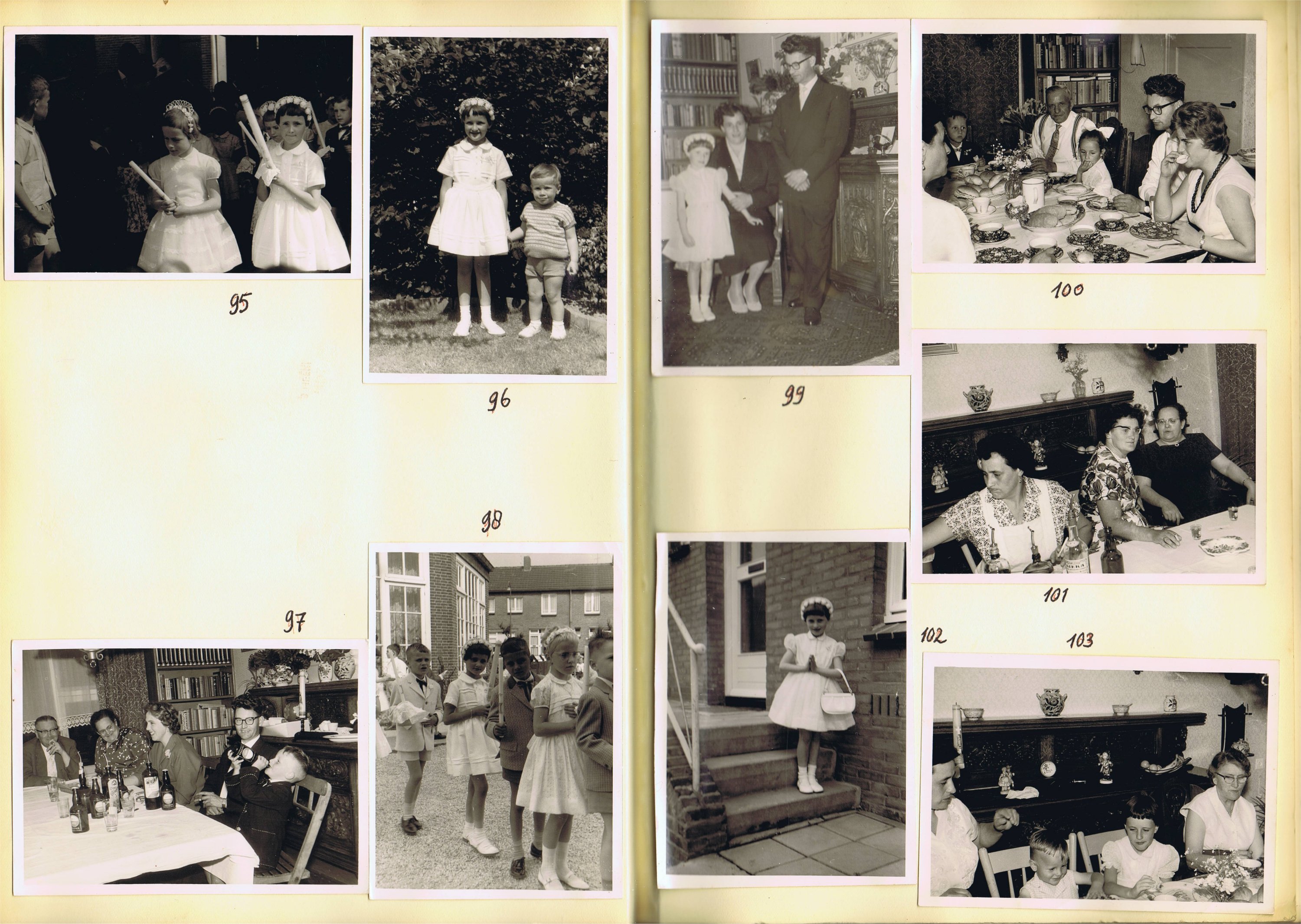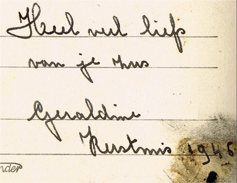 ![]() Huwelijk met Jo Bouwels in Lourdes | ![]() Geraldine | ![]() Handschrift van Geraldine op de kaart (zie foto hiernaast) die ze aan haar broer Jozef in Nyasaland stuurde. | ![]() Sjerdien, 12 jaar, op de foto t.g.v. het Vormsel. |