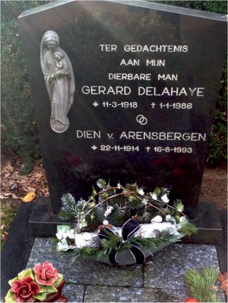 ![]() Sjir in pak marechaussee in de Stationsstraat in Klimmen. | ![]() Graf van Gerard Delahaye en Dien van Arensbergen. | ![]() Zo'n sterke man kon veel eten. |