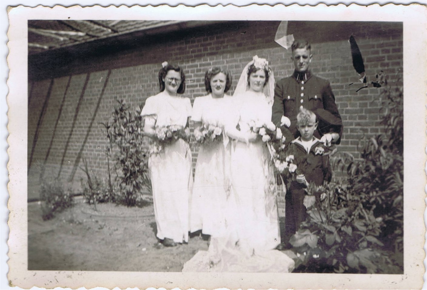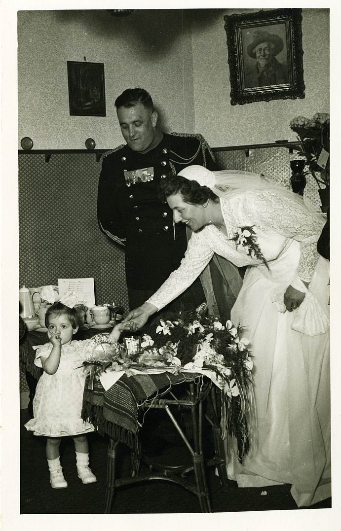 ![]() foto album 1965 Huwelijk met Dien van Arensbergen: 31 mei 1955. | ![]() Nonk Sjir, 1 januari: dag van de valse handdrukken (klik op de foto voor het artikel). | ![]() Huwelijk Sjir en Mia Pijpers: 19 juli 1944 | ![]() Huwelijk Sjir en Mia Pijpers: 19 juli 1944. Bruidsmeisje geheel links is zus Jeannette van Sjir. |