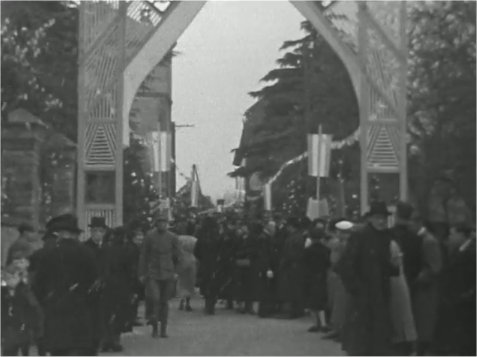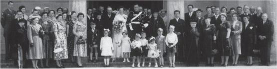 ![]() | ![]() Alle genodigden bij het uitgaan van de kerk. |