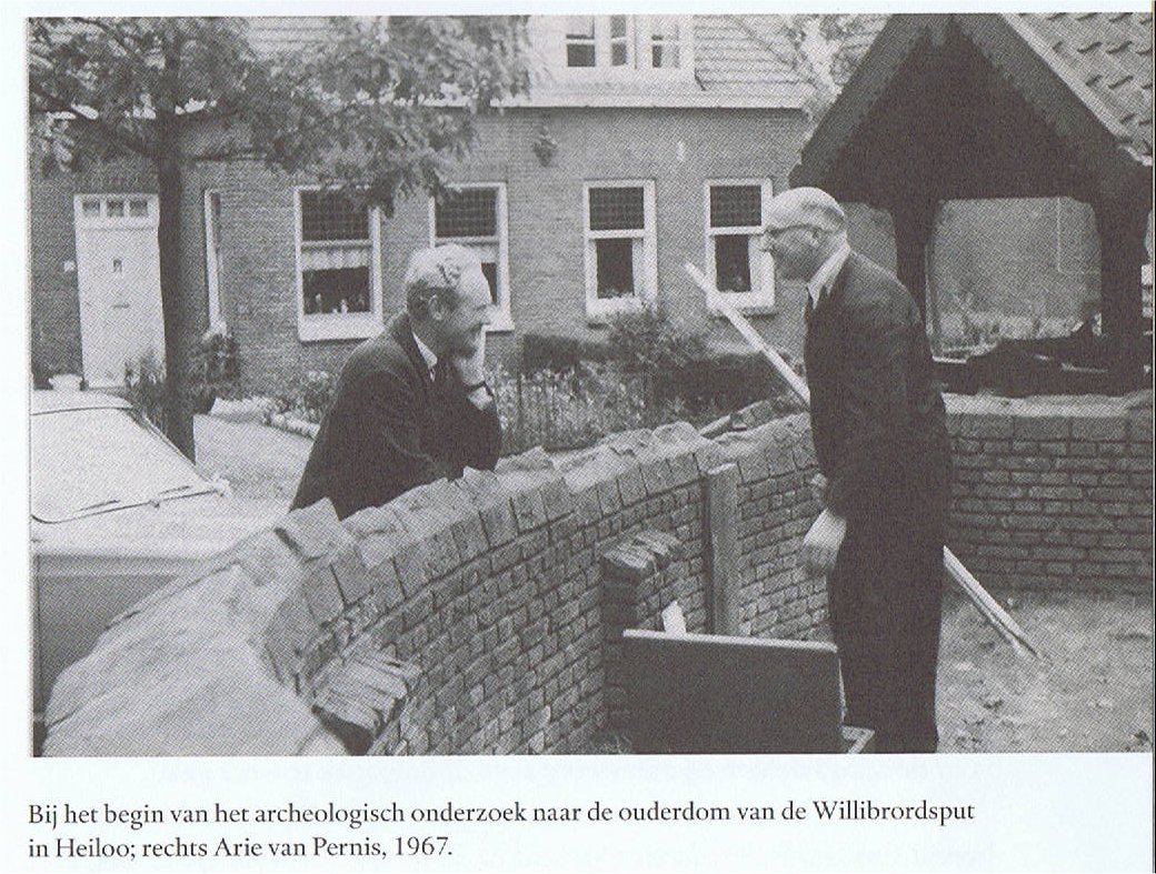 Op de foto hiernaast: Halbertsma bij de put van Willibrodus in Heiloo. Foto uit E.H.Cordfunke (p.109)In Heiloo, was de veronderstelling, zou Willibrord een putje hebben laten graven/metselen om de heidense Friezen te dopen. Het is eenzelfde mythe als die in Dokkum. In Heiloo is van een Willibrord-verering pas nà de 14e eeuw sprake geweest. In 1156 stelde de abdij van Echternach aan de Graaf van Holland en de abdij van Egmond de eis, dat 24 kerken in Holland, die vroeger van St. Willibrord waren geweest, moesten worden gerestitueerd. Een van die kerken was Heligeloo dat Heiloo zou zijn. Echter de Graaf en de abdij gingen hierin niet mee en stelde dat die kerken nooit aan Willibrord hadden toebehoord, maar gesticht waren door plaatselijke notabelen. Echternach haalde bakzeil en richtte toen haar pretenties op Brabant. Het Willibrordusputje in Heiloo is een produkt van de veertiende eeuw toen Willibrord al vele eeuwen dood was. Willibrordus-putjes zijn er vele in Vlaanderen en Brabant terwijl ze zeldzaam zijn in Holland. Het oudste Willibrordus-putje staat te Wulpen bij Veurne. Andere Willibrordus-putjes (niet-uitputtende lijst) te : Aldeneyck, Asten, Bakel, Berkel, Deurne, Diessen, Eersel, Geysteren, Kasterlee, Meyel, Munsterbilsen, Neeroeteren, Oss, Poppel, Reppel, Ruimel, Stamproy, Vessem en Viersel. De cultuur van ‘heiligenputjes’ bewijst niets omtrent een heilige, omdat die pas vanaf de twaalfde eeuw ontstond. In een voetnoot in Frieslands oudheid lezen we nog: « Verbist, Saint Willibrord (1939) 216-217. De auteur legt de nadruk op Willibrords optreden tegen de ‘culte des sources’ met hun bronnen, bronnymphen, nikkers, etc. In het bisdom Utrecht waren de Willibrordusputten – in Friesland ‘dobben’ geheten – echter gegraven en zeker niet ouder dan de in de nabijheid staande Willibrordskerken, zoals dit te Heiloo kon worden aangetoond.» Rondom de 'culte des sources' hing vanouds de sfeer van afgoderij, bijgeloof en kwade geesten, waardoor de bron niet gebruikt werd voor het Christelijke doopsel. Het water moest eerst vanuit de bron geschept worden en gezegend worden, voordat het als doopwater gebruikt kon worden. De heiligen-putjes zijn ontstaan vanuit een volksgeloof en volksdevotie, niet vanuit heiligenverering door de Roomse Kerk gepromoot. Het vroeg-middeleeuwse Heliglo (of Hleliglo, Leliglo), gelegen in Batua was niet Heiloo, maar, Helfaut in Frans-Vlaanderen, in een bosrijke omgeving zes kilometer ten zuidwesten van St.-Omaars. Ligt Heiloo in de Betuwe, dat toch de Batua was? Ook kan worden gewezen op La Hellebronne, een zijstroompje van de Slack bij Marquise, dat langs de plaats Hellebronne stroomt, en dat in 867 vermeld wordt als Helicbrunna en in 1286 als Heligeborne, een naam die wordt afgeleid van heilig + bron (Toponymie générale de la France, tome II, t.a.p., p. 1028).