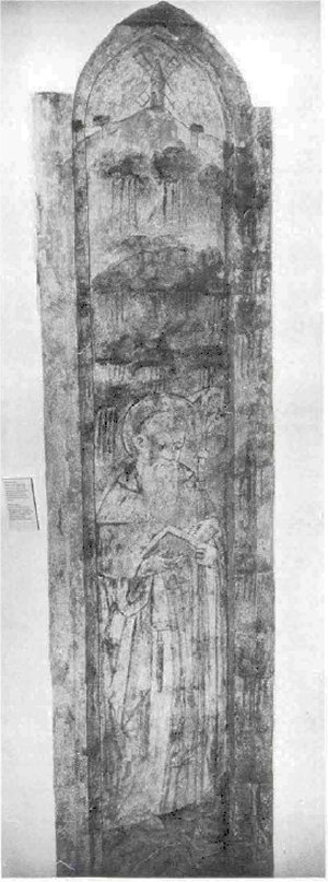 Muurschildering in de Buurkerk van Antonius abt. Derde kwart 15de eeuw. Het valt moeilijk uit de maken op grond waarvan aan deze heilige medische specialismen zoals genezing van ernstige misvormingen en veeziekten werden toegeschreven.