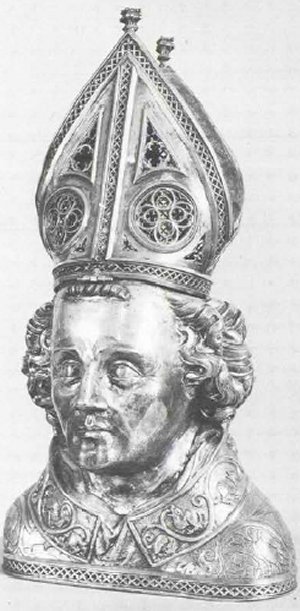 - Toegegeven, dat drie gouden ringen bij onderscheiden bisschoppen en kerkvaders voorkomen, zodat er geen 'disjunctief' criterium aan kan worden ontleend, dan mag nog niet zonder meer geconcludeerd worden: dat het onmogelijk is om in de gouden ringen de persoonlijke attributen van St. Magnus te zien. Nog minder geoorloofd is, hetgeen de schrijver doet, uit de goudberingde bisschoppengroep een willekeurige te nemen en aan St. Michael te koppelen.