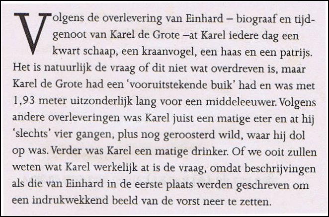 Wat we feitelijk zeker weten is dat alles wat over Karel de Grote geschreven is, slechts bedoeld was om van hem een indrukwekkend vorst te maken. En dat is gelukt, zoals uit het verloop van de geschiedenis is gebleken. Zie knipsel hiernaast.Het feodale stelsel. Het feodale systeem wat Karel voorstond is volledig gebaseerd op diefstel en maffia praktijken. Gebieden door oorlog in bezit nemen dat niet hun eigendom was is zo'n kenmerk van dit systeem. Daarnaast de bewoners verplichten een groot deel van hun oogst af te staan is gelijk aan wat de maffia doet, of mannen verplichten deel te nemen als strijder in hun leger. Het zijn enkele voorbeelden van het systeem van Karel de Grote. Hoe krijg je anders zo'n groot rijk? En dan wordt deze meedogenloze machthebber als voorbeeld gesteld voor de Europese eenwording. In naam van Karel de Grote waarbij de Kerk van Rome als legitimatie misbruikte, zijn allerlei misdaden gepleegd, die tegenwoordig tot een veroordeling van het Internationaal Strafhof te Den Haag zouden hebben geleid. Te denken valt aan het afslachten van gevangen genomen Saksen en de deportatie van overgebleven Saksen. Hier was gewoon sprake van een etnische zuivering, een genocide. Ook de slavenhandel vierde in zijn tijd hoogtij, hoewel de Paus dat verboden had. Karel de Grote kan beter gekwalificeerd worden als een despoot, een dictator, een massamoordenaar die ruim 50 jaar oorlog heeft gevoerd om zijn rijk bijeen te (ve)rove(re)n. Wie het niet met hem eens was of hem in de weg liep werd rücksichtlos uit de weg geruimd, vaak vermoord of levenslang 'opgesloten' in een klooster. Allemaal zogenaamd onder het mom van het Christendom en waar de Kerk dus aan bijdroeg met hun 'Goddelijke' goedkeuring. Het zijn schandelijke praktijken, die tot op de dag vandaag plaats vinden, waar oorlogen worden gesteund vanuit welke religie dan ook. De Godsdienst wordt misbruikt en ingezet als politiek wapen. En dat wapen is verschrikkelijk. Het draagt een soort Goddelijke goedkeuring in zich van meedogenloosheid in onderdrukking, uitputting, misbruik en genocide op een ongekende schaal. Deze schaduwzijden van in feite de ergste vorm van 'goddeloosheid' blijven in de historische context te vaak onderbelicht en geven een historisch onjuist beeld van het Frankische Rijk onder deze dictator, naar wie prijzen tot eenwording en cultuur zijn genoemd. Veel gekker kan het toch niet worden? Ja het kan nog veel gekker worden. Denk eens aan al die goedgelovige missionarissen die slechts met goedkeuring en instemming van de plaatselijke machthebbers het geloof konden verkondigen. Daarbij ging het allerminst over de verspreiding van de Christelijke waarden en normen, maar het Christendom was een 'machtsmiddel' om volkeren aan zich te binden. Ook dit verschijnsel is van alle tijden. Wie niet met mij is, is tegen mij. Bekijk in deze zin eens de prediking van Willibrord en Bonifatius. Zij werkten dus mee aan de onderdrukking van die heidenen. Hoe heilig waren ze dan? Is dan vreemd dat Bonifatius als vertegenwoordiger van hun erfvijand door de Friezen vermoord werd. Dat was geen geloofsmoord, maar een politieke moord. Het rijk van Karel de Grote blijkt overigens een weinig stabiel rijk en verre van een rijk van eenheid, waar de Europese Unie zo graag aan refereert. Na zijn dood viel het rijk al snel uiteen door onderlinge ruzies onder erfgenamen en zogenaamde getrouwen. Dat is tevens een kenmerk van een dictatoriale staat. Als de dictator overlijdt breek de chaos los. Ook dat gebeurde na het jaar 814. Zijn zoon en opvolger Lodewijk de Vrome wordt niet voor niets 'de Vrome' genoemd. Niet dat hij 'vroom' was in de zin van gelovig, maar vroom in de betekenis van 'nuttig', of 'flink'. Vroom als godsvruchtig stamt pas uit de 16de eeuw. Daarvoor betekende vroom 'kloek', wat het in het West-Vlaams nog steeds betekent: een vrome ridder is een kloeke, een dappere ridder. Lodewijk was van een meer menselijk kaliber en stond in schril contrast met zijn vader. Lodewijk de Vrome had het niet gemakkelijk en zijn zonen, kleinzonen van Karel de Grote leken toch meer op hun opa dan op hun vader. In 823 schonk Lodewijk zijn zoon Karel de Kale (le Chauve: 823-877), die hij met zijn nieuwe vrouw Judith kreeg, een deel van het rijk. Dit tot groot ongenoegen van Lodewijks oudere zoons Lodewijk (onjuist de Duitser genoemd: 806-876)), Lotharius (795-855) en Pepijn (797-838), die hun deel waar zij recht op meenden te hebben zagen slinken. Zo kwam het dat Lodewijks eigen zoons zijn heerschappij gingen betwisten. Tot een grote uitbarsting kwam het in 833. In oktober van dat jaar werd Lodewijk door zijn oudste zoon Lotharius gevangen genomen en gedwongen tot een ritueel van openbare boetedoening, waarbij hij, neergeworpen in de kerk van Soissons, zijn zonden bekende en zijn wapens aflegde voor het altaar. Hij werd in een boetekleed gehuld en opgesloten. Zijn vrouw Judith werd in Italië gevangengezet. Lotharius was getrouwd met Emma, de jongere zus van keizerin Judith, zijn stiefmoeder. Het is moeilijk voorstelbaar dat Emma zwijgend heeft toegekeken terwijl haar echtgenoot haar zus en haar zwager, zijn vader, gevangen zette en een openbare boetedoening afdwong. De drie zonen van Lodewijk bleven verdeeld en bleven twisten over de verdeling van het Rijk van hun opa, wat leidde tot de verdelingen in 833 en 839 (nadat Pepijn overleed) en uiteindelijk tot de verdragen van Verdun in 843, van Meerssen in 870 en van Ribemont in 880. De grootschalige kerstening kan in deze tijd wel iets positiefs lijken, maar had hetzelfde niveau als die van de hedendaagse Taliban. Slechts onder dreiging van geweld liet men zich 'bekeren' en dopen waardoor de basis werd gelegd van Karels rijk en 'integratie'politiek, echter meer een politiek van terreur. Onder het mom van verspreiding van het Christelijk geloof werd er gemoord en geplunderd, werden volkeren verbannen of als slaven verkocht. Karel de Grote misbruikte zijn zogenaamd 'door God gegeven gezag' om anderen te ond