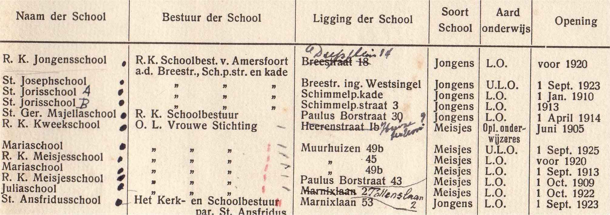 Toch blijkt men in de praktijk gehandeld te hebben alsof het een overgeplaatste school betrof. Ook in diverse archiefstukken wordt het adres van de oude school in de Breestraat vervangen door dat van de nieuwe school aan het Dupontplein. Een voorbeeld van zo'n adreswijziging vind je op de lijst der R.K. Bijzondere Scholen in het dekenaat Utrecht uit 1928 waarop in 1934 (Archief 1934) Breestraat 18 is vervangen door Dupontplein 14. Als datum van opening (stichtingsdatum) wordt "voor 1920" genoemd. (In de aanhalingen uit het oude archief –dat teruggaat tot 1822!!!!- is de letterlijke tekst aangehouden, dus met oude spelling en oude woorden.)