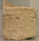 Carvium staat niet op de Peutingerkaart. Opgravingsgegevens zijn er niet, alles wat we vermoeden te weten is afkomstig uit weggespoelde baggervondsten! Als de naam Carvium voor Romeins Herwen juist is, en daar gaat men in Nederland van uit, bevestigt dat nogmaals dat de Peutingerkaart niet over Nederland gaat en dat de Limes Germanicus niet in Nederland gelegen heeft. De algemeen aanvaarde visie dat Carvo te Kesteren zou zijn gelegen, is nog niet met vondsten bevestigd.Bron: J.Bervaes. Carvone bestond nog niet in de tijd van Drusus (Bechert, o.c. p.26), dus kan nooit het Carvium ad molem van de dam van Drusus (12 v.Chr.) geweest zijn, wat Byvanck er van maakt. Drusus heeft door het gebied van de Bataven een kanaal laten aanleggen, waardoor een veiliger vaarweg ontstond van de Renus en een dam laten bouwen om een betere verdeling te maken van het water dat door de Renus wordt aangevoerd. (Byvanck, o.c. p.203). Deze constatering van Byvanck weerspreekt de traditionele visie in Nederland onmiskenbaar. ![]() De grafsteen van Marcus Mallius. De oude identificatie van Kesteren met "Carvo", een plaats die bekend is van de Peutinger-kaart, blijkt niet correct te zijn; Levefanum is waarschijnlijk identiek aan Herwen (Latijn: Carvium). Bron: Livius.org (Jona Lendering). |