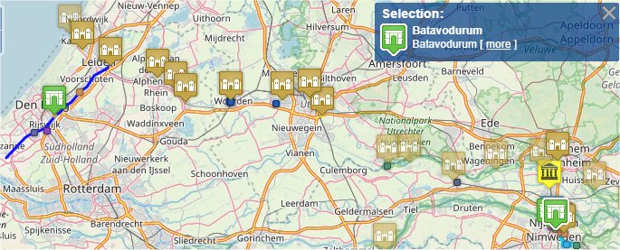 Op LIVIUS worden 19 plaatsen genoemd waar een Romeins Castellum heeft gestaan (ook hier dezelfde bruine pictogrammen), of wordt vermoed of is waarschijnlijk. Daarvan zijn er 8 onbekend of worden vermoed of zijn nooit teruggevonden, zoals de Brittenburg.
