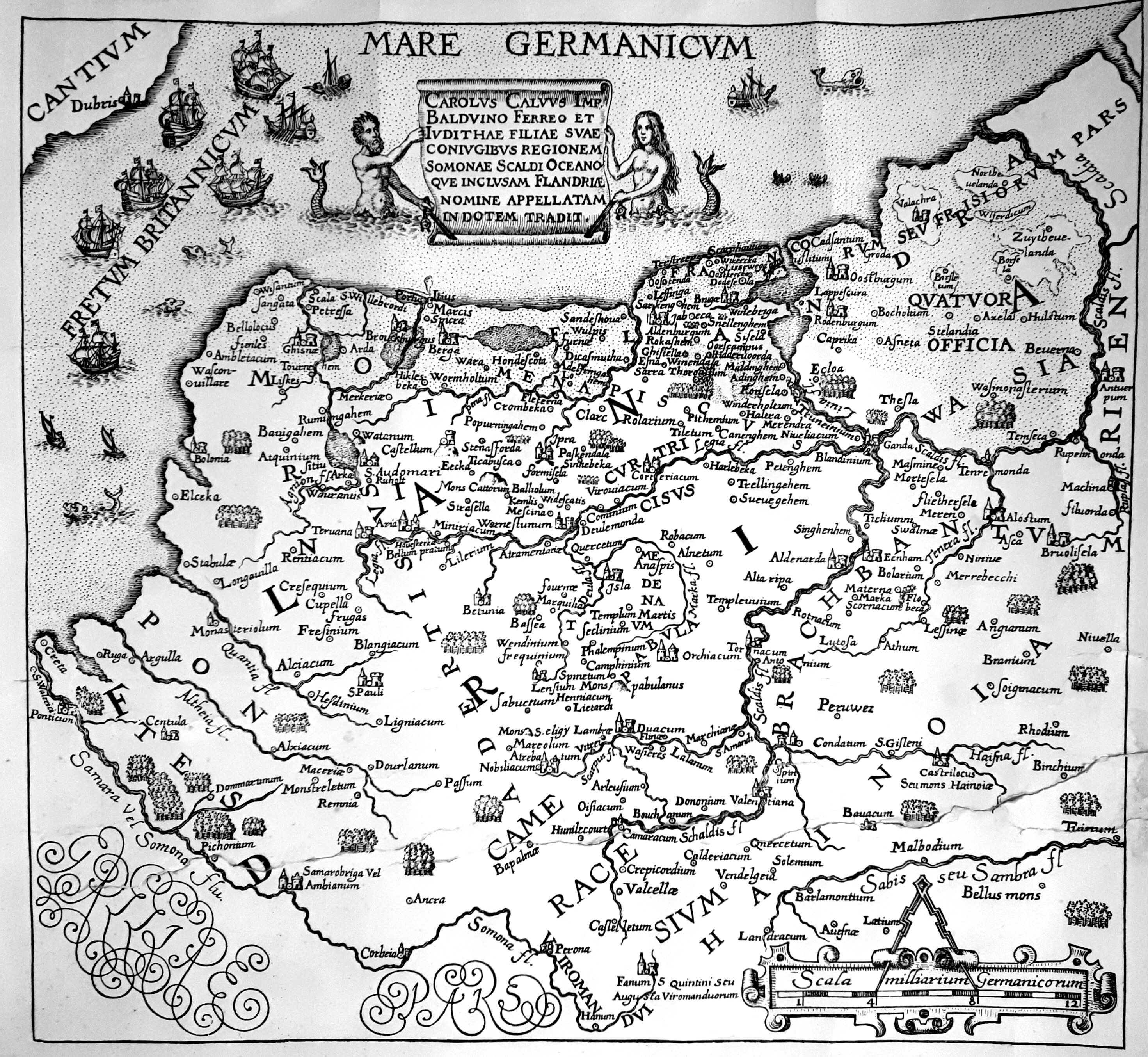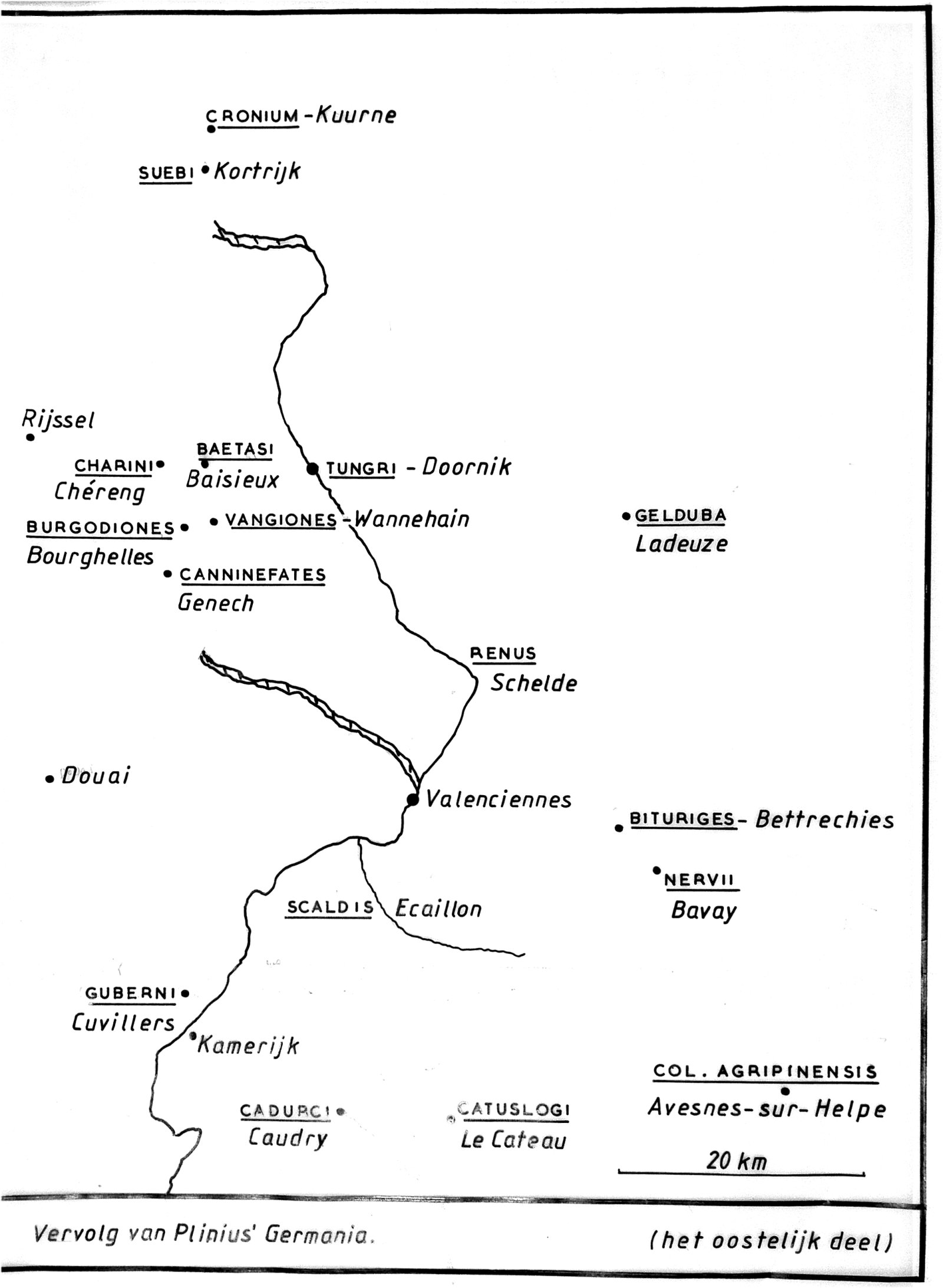 Plinius kennen we in Nederland vooral van de beschrijving van het land 'dat tweemaal daags overstroomd en waar een ellendig volk als schepelingen op heuveltjes woont en vissen rond hun hutjes vangen en zich met gedroogde klei verwarmen'. Men heeft deze tekst steeds als de eerste beschrijving van Friesland met de bewoners op terpen beschouwd. Daarbij werd vergeten de rest van Plinius verhaal te lezen. Beschrijft Plinius hier Friesland uit het tweede millennium? Of was het Frisia in Vlaanderen uit het eerste millennium, waar geologisch precies hetzelfde bestaat? En bestonden de terpen in Friesland al in de tijd van Plinius? (Uit een uitgebreide studie blijkt dat de meeste terpen van na het jaar 1000 dateren: zie de voetnoot En op de enkele wel bestaande terpen woonden toch niet het machtige volk van de Friezen dat het behalve de Romeinen. later ook de Franken nog knap lastig maakten). ![]() Plinius (70 na Chr.) geeft duidelijk aan waar de Renus stroomde en de Friezen woonden. Hij noemt daarbij afstanden, volkerennamen en meren geeft. "In de Renus zelf strekt zich, op een lengte van bijna 100 mijlen, het edelste eiland van de Bataven en Cananefaten uit, en liggen andere eilanden van de Frisii, de Chauci, de Frisiavones, de Sturii en de Marsaci, die zich tussen het Helinium en het Flevum bevinden. Zo heten de mondingen waarin de Renus zich uitstort in meren; In het westen stort hij zich in Mose (moeras) en in het midden bewaart hij zijn eigen naam." Deze stammen woonden volgens de traditionalisten dus in Zuid-Holland en Utrecht tussen Helinium (Maasmond) en Zuiderzee (Flevum). Veel gekker kan het toch niet worden! Plinius zelf biedt ons een exacte geografische reconstructie die wij ook toponymisch kunnen verbinden aan plaatsnamen. Want in zijn beschrijving van Noord-Gallië, geeft hij namen van eilanden op hoogten die in Friesland niet bestaan, maar in Frans-Vlaanderen nog bestaan. ''De landtong van de Cimbri steekt een heel eind in zee en vormt een schiereiland dat Tastris heet (het Promontorium Cimbrorum, een voorgebergte!). Vandaar zijn 23 eilanden aan Romeinse wapens bekend. Het edelste ervan Burcana, wordt door de onzen Fabaria genoemd (boon-eiland) vanwege zijn gelijkvormigheid met deze vrucht, die vanzelf is ontstaan. Ook is er een eiland Glaesaria, door inwoners Austeravia geheten en ook Actania." Tastris is etymologisch de voorloper van Testerbant. Het voorgebergte van de Cimbren was 58 m. hoog, Tasterbanzons (zons=zonen) heetten de zonen of afstammelingen van de kust-Friezen, schreef Ammianus Marcellinus. Burcana is Bourecques bij Béthune, oud-Batua en het eiland van Bataven. Austeravia is de voorloper van Ostrevant, waarvan heden wel 10 plaatsnamen bestaan tussen Arras en St.Amand-les Eaux, zoals Sailly-en-Ostrevant, Marcq-en-Ostrevant, Marquette-en-Ostrevant, Montigny-en-Ostrevant, alle op 70 à 80 m. hoog gelegen. De abdij van St.-Amand lag te Elno "in Osterbandensi Scaldinium", in het Scheldische Ostrevant geeft een drievoudige indicatie van de streek wat ook staat in de Historia van de abdij van Hasnon, gelegen "in pago Ostrevanto ad Scarpim Fluvium in diocesi Atrebatensi", vertaald: in de regio Ostervant bij de Scarperivier in het bisdom Arras. Het laatste eiland dat Plinius noemt is Actania, gelegen op de hoogte van Acquin (80 m), nabij Lumbres, dat nog Actonia genoemd werd in een akte van St.-Bertinusabdij uit 844. De buren uit Avon bij Lens werden stamgenoten van Frisii, de Frisiavones en zie hoever in het binnenland. De stuurlui of Sturar in Oud-Fries, latiniseerde Plinius tot Sturii als eilandbewoners. De Marsaci komen uit de hoogten van Marquise, tussen het Flevum, de zeearm tot St.-Omer, nog zichtbaar op de Morinenkaart uit 880 (klik hier voor die kaart) en het Helinium of de Helena en Lianevallei. De zeearm, tussen het Promontórium Cimbrorum dat tot Rusbeas (Roubaix) reikte en het door Plinius genaamde Saevogebergte (Marquise-Desvres), zal gestroomd hebben zoals de Peutingerkaart aangeeft, over de laaglanden voor Arques, Béthune, St.-Amand, Doornik, Charleroi tot Namen en huidige Opper-Rijn (Obrinca) met mondingen in de Atlantische oceaan. Kan deze zeearm geologisch aangetoond worden in Nederland? Het is wel duidelijk. Alles plaatsen die Plinius in Germania noemt, zijn in Frans-Vlaanderen te vinden. In Friesland, maar waar dan ook ook in Nederland of in Duitsland zijn deze plaatsen onvindbaar en worden dan ook verzwegen. Het is onmiskenbaar dat met de Codanus Het Kanaal bedoeld wordt en niet de Oostzee! De 'noordelijke' Oceaan is de Atlantische Oceaan en niet de Noordzee. Let hierbij ook op de westoriëntatie. Plinius schrijft nergens over Nederland, al wordt zijn teksten wel steevast daarvoor gebruikt. Plinius schreef over Frans-Vlaanderen waar bewoners op eilandjes leefden die door de zee omspoeld werden. Dit verschijnsel bestaat nog steeds in Frans-Vlaanderen waar de 'îles flottantes' over en over bekend zijn. Zie hierboven de kaarten van het westelijk en het oostelijk deel van Germania. Klik op elk deel voor een vergroting. Let ook op dat Plinius en Tacitus elkaar bevestigen, maar ook de gegevens van Strabo en het Itinerarium Antonini en Ptolemeus komen daar haarfijn mee overeen. ![]() De visie van Albert Delahaye. Plinius is een van de meest favoriete klassieke Romeinse schrijvers van Albert Delahaye. Plinius begaf zich, gedreven door wetenschappelijke nieuwsgierigheid en als goed verslaggever in 79 na Christus naar de vuurspuwende Vesuvius, waar hij helaas jammerlijk om het leven kwam. Afbeelding hiernaast: de tocht van Plinius naar de Vesuvius. Die wetenschappelijke gedrevenheid en zelfs het geconfronteerd worden met een vuurspuwende vulkaan van de historische wetenschap, heeft Albert Delahaye niet weerhouden zijn studie en onderzoek te doen en zijn bevindingen in zijn boeken te publiceren. ![]() Afbeelding recht: de vuurspuwende vulkaan van de historische wetenschap. In zijn werken laat Plinius merken dat hij behalve schrijver ook een groot geleerde was. Z