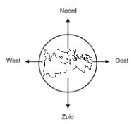 Wat duidelijk is dat de uren van de dag lopen van oost naar west. In het oosten begint de dag en naar mate we de zon verder naar het westen zien gaan (i.c. de aarde verder naar het oosten draait) nemen de uren in getal toe.