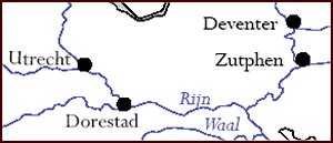 - Alhoewel de heiligenlevens van Liudger en Lebuïnus resp. een halve eeuw en een eeuw na hun dood werden opgetekend, speelt de naar het noorden stromende IJssel bij Wichmond, Wilp en Deventer een prominente rol in de overlevering. De IJssel lijkt daarmee al ten tijde van Lebuinus (ca. 765-774) langs Deventer te hebben gestroomd. (p.53). De geschiedenis van Zutphen staat of valt met die van Deventer en de IJssel. Devnetr was niet het Taventria uit de klassieke akten. Dat was Desvres in Noord-Frankrijk.